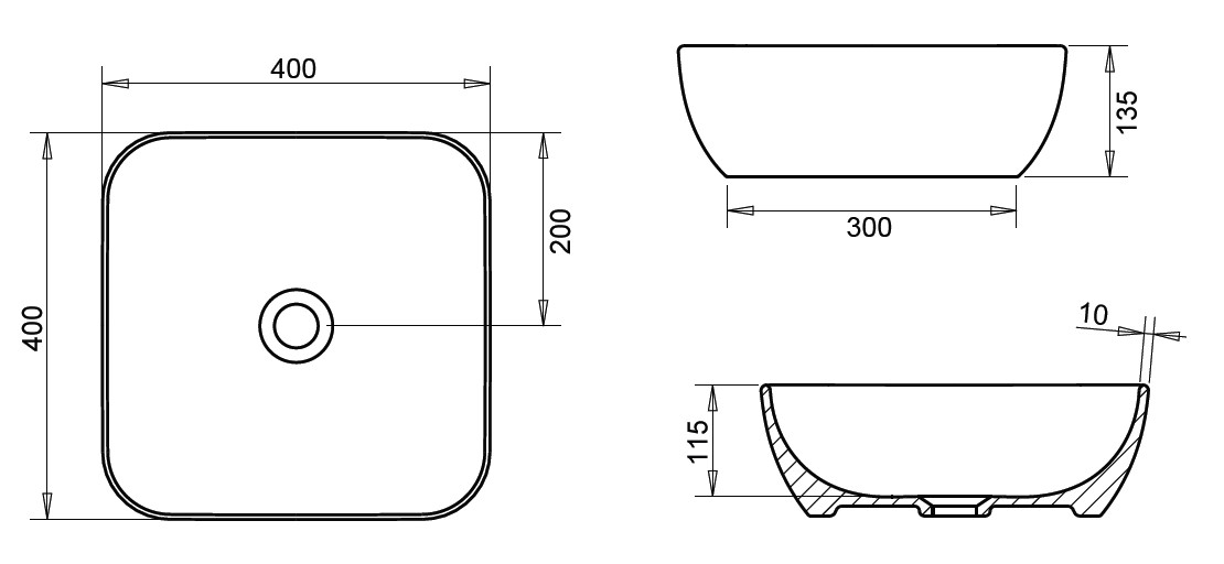 Por040N Por Νιπτηρασ Black Matt Ελευθ. Τοποθετησησ 40X40Cm