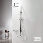 Ρυθμιζόμενη Κολώνα Ντους Με Κεφαλή 20×20 Για Σύνδεση Μεμπαταρία Λουτρού, Inox