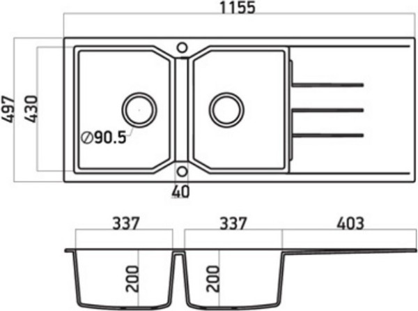 - Διαστάσεις Νεροχύτη: 116 × 50 cm