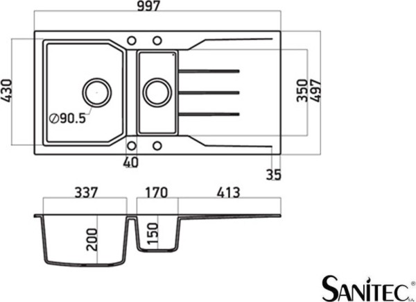 Sanitec Classic 329 Νεροχύτης Γρανιτένιος 104×51