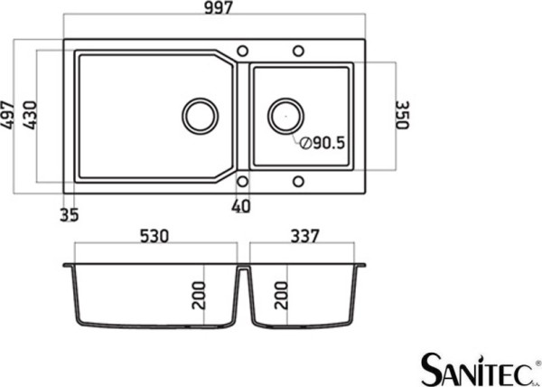 Sanitec Classic 307 Νεροχύτης Γρανιτένιος 92×51