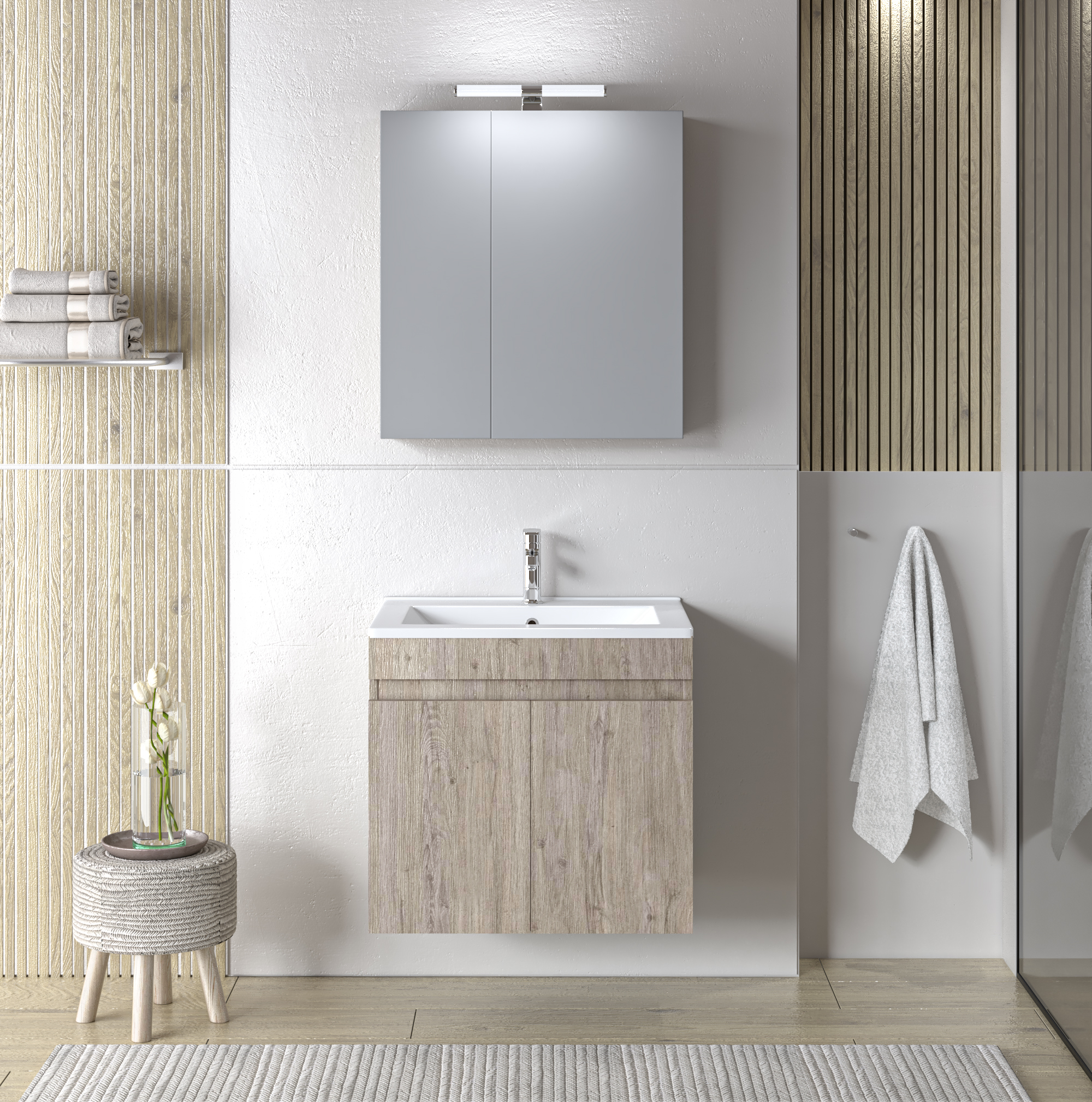 Σετ Έπιπλο Μπάνιου Omega Beige Oak 60 9Som060Bo0W Πάγκο 57X44X57Cm