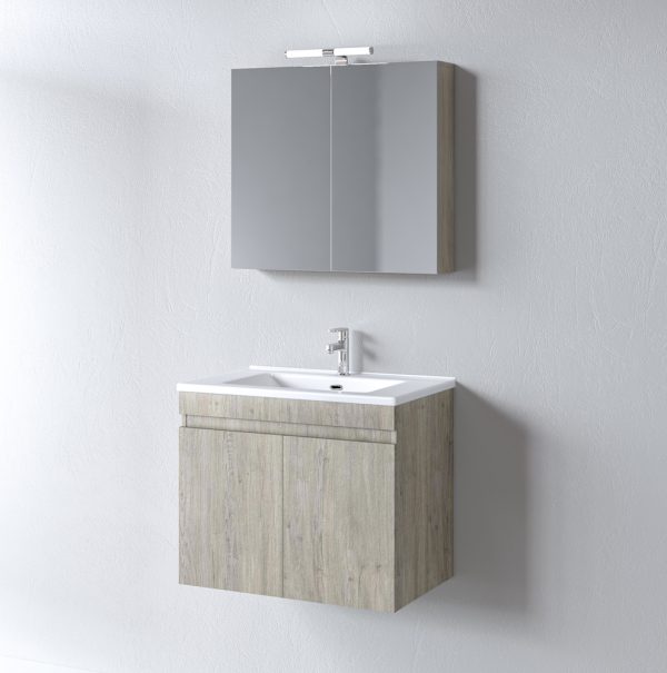 Σετ Έπιπλο Μπάνιου OMEGA BEIGE OAK 75 9SOM075BO0 Πάγκο 72x44x60 Αποτελείται από: • Πάγκος κρεμαστός OMEGA BEIGE OAK 75. Περιλαμβάνει μεγάλο ερμάριο για την εξοικονόμηση επιπλέον αποθηκευτικού χώρου στο μπάνιο. Με τέλεια εφαρμογή σε όλες τις επιφάνειες με ή χωρίς πλακίδια. • Καθρέφτης OMEGA BEIGE OAK 75 . Δίπορτος καθρέφτης με μεγάλο χώρο αποθήκευσης και διαχωριστικό ράφι για εξοικονόμηση χώρου στον πάγκο σας. Με το εσωτερικό ράφι οργανώνετε καλύτερα την αποθήκευση χρηστικών αντικειμένων καθημερινής χρήσης για όλα τα μέλη της οικογένειάς σας. • Νιπτήρας slim 75 από λευκή πορσελάνη κορυφαίας ποιότητας και υψηλής αντοχής και αισθητικής. Διαθέτει οπή υπερχείλισης. Μελαμίνη 16mm πάχος Το Σετ Έπιπλο Μπάνιου Omega στην απόχρωση Beige Oak αποτελεί ένα στυλάτο και μοντέρνο κομμάτι για το μπάνιο σας! Έχει την υφή και την όψη του ξύλου σε αποχρώσεις του μπεζ. Με εργονομικό σχεδιασμό αλλά και λειτουργικότητα. •Πρακτικοί αποθηκευτικοί χώροι •Μηχανισμοί για απαλό και αθόρυβο κλείσιμο •Εύκολη τοποθέτηση •Ετοιμοπαράδοτα προϊόντα Δεν συμπεριλαμβάνονται το φωτιστικό, η μπαταρία και η στήλη. Διατίθεται έτοιμο συναρμολογημένο.