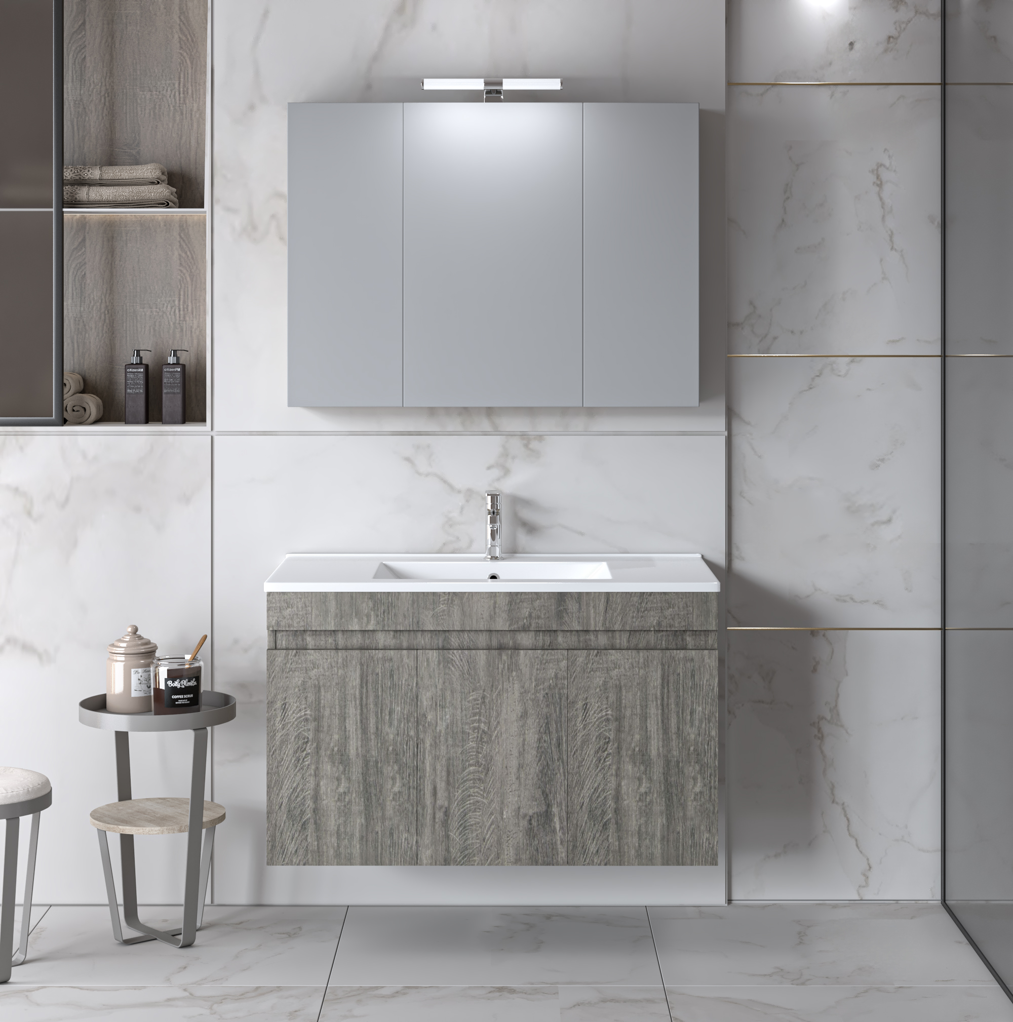 Σετ Έπιπλο Μπάνιου OMEGA Berlin 90 9SOM090BE0W Πάγκο 87x44x60cm Αποτελείται από: Πάγκος κρεμαστός OMEGA Berlin 90. Διαθέτει ένα ευρύχωρο ντουλάπι με δύο πόρτες και ακόμα ένα μικρότερο με μία πόρτα. Το κάθε ντουλάπι σας προσφέρει έξτρα χώρο για την τοποθέτηση και οργάνωση των χρηστικών σας αντικειμένων. Καθρέφτης OMEGA Berlin 90. Τρίπορτος καθρέφτης με δύο χώρους αποθήκευσης και διαχωριστικό ράφι στο καθένα για εξοικονόμηση χώρου στον πάγκο σας. Με τα εσωτερικά ράφια οργανώνετε καλύτερα την αποθήκευση χρηστικών αντικειμένων καθημερινής χρήσης για όλα τα μέλη της οικογένειάς σας. Νιπτήρας SLIM 90 σε μοντέρνο γεωμετρικό σχεδιασμό κορυφαίας ποιότητας, σύγχρονης κατασκευής και υψηλής αισθητικής με γυαλιστερή πορσελάνινη υφή. Διαθέτει οπή υπερχείλισης. Εφαρμόζει τέλεια στον πάγκο του ΣΕΤ ΕΠΙΠΛΟΥ OMEGA και ο εργονομικός του σχεδιασμός προσφέρει λειτουργικότητα στην καθημερινή χρησιμότητά του. Μελαμίνη 16mm πάχος Το Σετ Έπιπλο Μπάνιου Omega στην απόχρωση Berlin αποτελεί ένα στυλάτο και μοντέρνο κομμάτι για το μπάνιο σας! Με εργονομικό σχεδιασμό αλλά και λειτουργικότητα. •Πρακτικοί αποθηκευτικοί χώροι •Μηχανισμοί για απαλό και αθόρυβο κλείσιμο •Εύκολη τοποθέτηση •Ετοιμοπαράδοτα προϊόντα Δεν συμπεριλαμβάνονται το φωτιστικό και τα διακοσμητικά. Διατίθεται έτοιμο συναρμολογημένο.