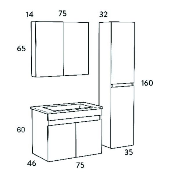 Σετ Έπιπλο Μπάνιου Omega Grey Oak 75 9Som075Go0 Πάγκο 72X44X60Cm