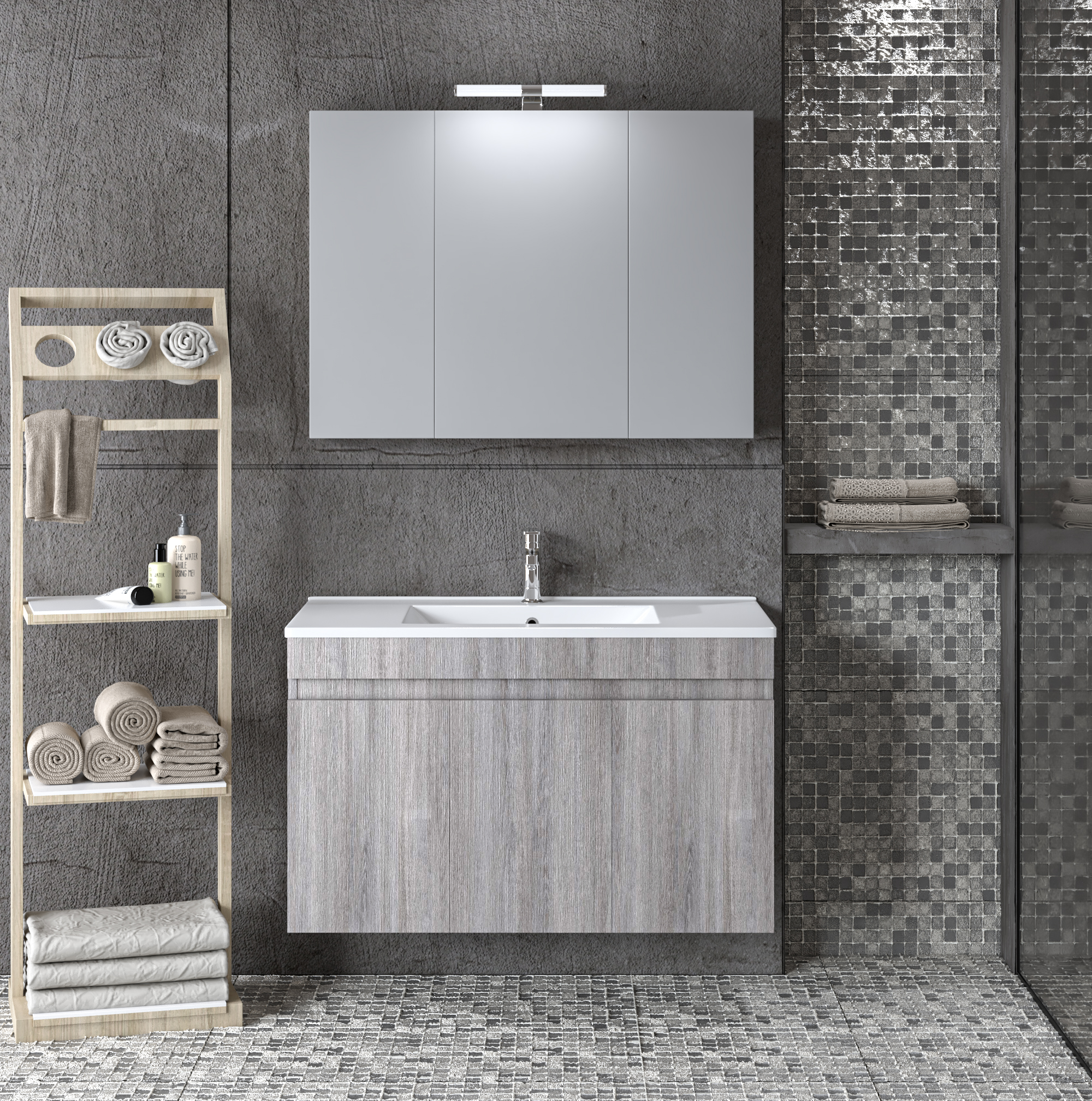 Σετ Έπιπλο Μπάνιου Omega Grey Oak 90 9Som090Go0W Πάγκο 87X44X60