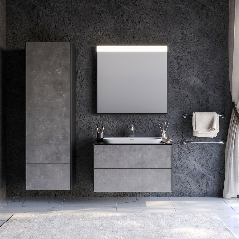 Σετ Έπιπλο Μπάνιου RODOS Ασημί MDF 18mm Λάκα 85 9SROD085SBM Πάγκο 85x50x51cm Αποτελείται από: Πάγκος RODOS Ασημί 85 κρεμαστός σε ματ λάκα και υλικό mdf. Διαθέτει δύο συρτάρια για την τοποθέτηση και οργάνωση αντικειμένων. Καθρέφτης με LED φωτισμό, τετράγωνος με πλαίσιο από mdf με ματ λάκα. Νιπτήρας πορσελάνης σε “ελεύθερη” τοποθέτηση πάνω στον πάγκο, χρώματος λευκού, κορυφαίας κατασκευής και υψηλής αισθητικής. Διαθέτει οπή υπερχείλισης. Ματ λάκα σε mdf Σετ Έπιπλο Μπάνιου RODOS σε Ασημί απόχρωση αποτελεί ένα στυλάτο και μοντέρνο κομμάτι με εργονομικό σχεδιασμό αλλά και λειτουργικότητα. Προσαρμόζεται σε κάθε τύπο μπάνιου. •Πρακτικοί αποθηκευτικοί χώροι •Μηχανισμοί για απαλό και αθόρυβο κλείσιμο •Εύκολη τοποθέτηση •Ετοιμοπαράδοτα προϊόντα Δεν συμπεριλαμβάνονται η μπαταρία, η στήλη και τα διακοσμητικά. Διατίθεται έτοιμο συναρμολογημένο.