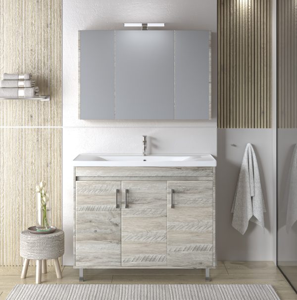 Σετ Έπιπλο Μπάνιου Savina Natural Oak 100 9Ssa100No0W Πάγκος 97X44X83Cm