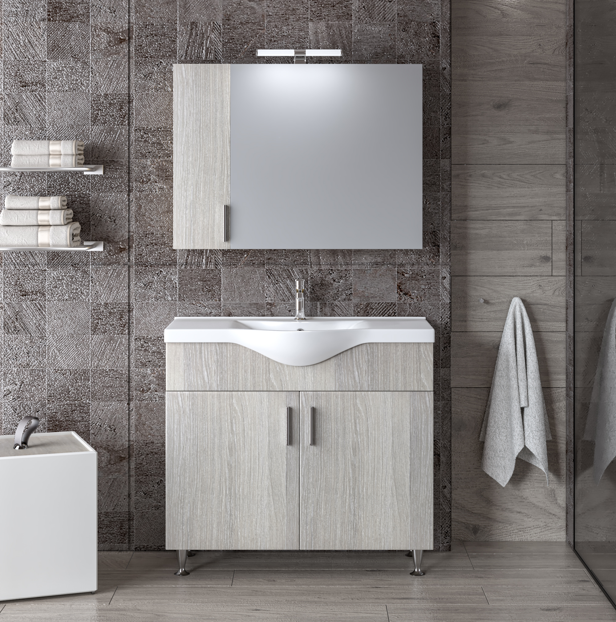 Σετ Έπιπλο Μπάνιου SIENA HARMONY NEW 90 9SSI090HN0W Πάγκο 90x34x83cm Αποτελείται από: Πάγκος με τέσσερα ποδαράκια SIENA 90 HARMONY NEW. Διαθέτει ευρύχωρο ντουλάπι με δύο πόρτες. Περιλαμβάνει εσωτερικό ράφι που σας προσφέρει έξτρα χώρο για την τοποθέτηση και οργάνωση των αντικειμένων σας. Καθρέφτης SIENA 87,5 HARMONY NEW. Περιλαμβάνει πρόσοψη καθρέφτη που ανοίγει προς τα δεξιά και μια μικρότερη ξύλινη πόρτα στο αριστερό πλαϊνό μέρος, στον ίδιο χρωματισμό με τον καθρέφτη, που ανοίγει προς τα αριστερά. Το μικρό ντουλαπάκι διαθέτει ένα ράφι που σας προσφέρει έξτρα αποθηκευτικό χώρο. Το μεγάλο ντουλάπι διαθέτει επίσης εσωτερικό ράφι για την τοποθέτηση των φαρμάκων και αντικειμένων καθημερινής χρήσης. Εξαιρετικός Νιπτήρας BASIC 90 σε μοντέρνο γεωμετρικό σχεδιασμό κορυφαίας ποιότητας, σύγχρονης κατασκευής και υψηλής αισθητικής με γυαλιστερή πορσελάνινη υφή. Διαθέτει οπή υπερχείλιση. Μελαμίνη 16mm πάχος Το Σετ Έπιπλο Μπάνιου Siena στην απόχρωση Harmony New που συνδυάζει την όψη του ξύλου με τις νέες τάσεις στο χρώμα, δίνει ένα άψογο διαχρονικό αποτέλεσμα! Με εργονομικό σχεδιασμό αλλά και λειτουργικότητα. •Πρακτικοί αποθηκευτικοί χώροι •Μηχανισμοί για απαλό και αθόρυβο κλείσιμο •Εύκολη τοποθέτηση •Ετοιμοπαράδοτα προϊόντα Δεν συμπεριλαμβάνονται το φωτιστικό και η μπαταρία. Διατίθεται έτοιμο συναρμολογημένο.