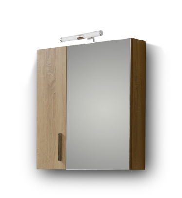 Σετ Έπιπλο Μπάνιου SIENA SONOMA 65 9SSI065SN0W Αποτελείται από: •Πάγκος με τέσσερα ποδαράκια SIENA 65 SONOMA. Διαθέτει ευρύχωρο ντουλάπι με δύο πόρτες. Περιλαμβάνει εσωτερικό ράφι που σας προσφέρει έξτρα χώρο για την τοποθέτηση και οργάνωση των αντικειμένων σας. •Καθρέφτης SIENA 60 SONOMA. Περιλαμβάνει πρόσοψη καθρέφτη που ανοίγει προς τα δεξιά και μια μικρότερη ξύλινη πόρτα στο αριστερό πλαϊνό μέρος, στον ίδιο χρωματισμό με τον καθρέφτη, που ανοίγει προς τα αριστερά. Το μικρό ντουλαπάκι διαθέτει ένα ράφι που σας προσφέρει έξτρα αποθηκευτικό χώρο. Το μεγάλο ντουλάπι διαθέτει επίσης εσωτερικό ράφι για την τοποθέτηση των φαρμάκων και αντικειμένων καθημερινής χρήσης. •Νιπτήρας BASIC 65 σε μοντέρνο εργονομικό σχεδιασμό, υψηλής αισθητικής. Η γυαλιστερή πορσελάνινη υφή του και το σχήμα του, αναδεικνύει την εμφάνιση του. Διαθέτει οπή υπερχείλισης. Μελαμίνη 16mm πάχος Το Σετ Έπιπλο Μπάνιου Siena στην απόχρωση Sonoma αποτελεί ένα μοντέρνο κομμάτι. Συνδυάζει την όψη του ξύλου με τις νέες τάσεις στο χρώμα και δίνει ένα άψογο διαχρονικό αποτέλεσμα. • Πρακτικοί αποθηκευτικοί χώροι • Μηχανισμοί για απαλό και αθόρυβο κλείσιμο • Εύκολη τοποθέτηση • Ετοιμοπαράδοτα προϊόντα Δεν συμπεριλαμβάνονται το φωτιστικό και η μπαταρία. Διατίθεται έτοιμο συναρμολογημένο.