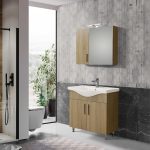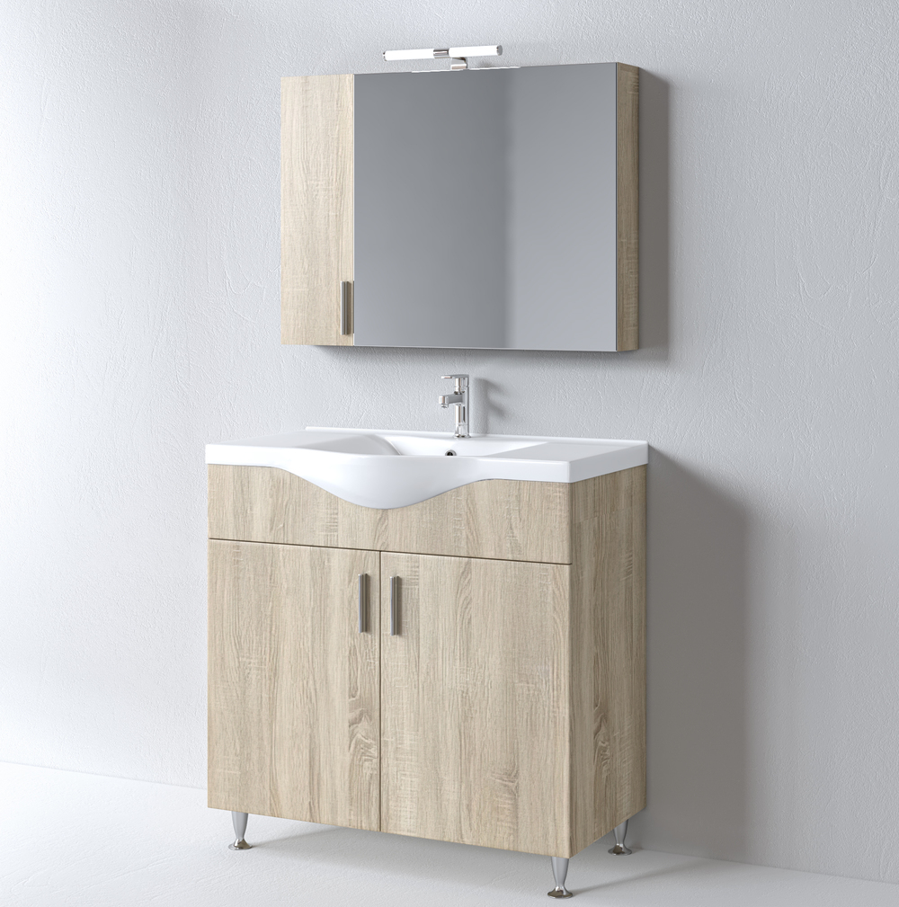 Σετ Έπιπλο Μπάνιου SIENA SONOMA 90 9SSI090SN0W Πάγκο 90x34x83cm Αποτελείται από: •Πάγκος με τέσσερα ποδαράκια SIENA 90 SONOMA. Διαθέτει ευρύχωρο ντουλάπι με δύο πόρτες. Περιλαμβάνει εσωτερικό ράφι που σας προσφέρει έξτρα χώρο για την τοποθέτηση και οργάνωση των αντικειμένων σας. •Καθρέφτης SIENA 87,5 SONOMA. Περιλαμβάνει πρόσοψη καθρέφτη που ανοίγει προς τα δεξιά και μια μικρότερη ξύλινη πόρτα στο αριστερό πλαϊνό μέρος, στον ίδιο χρωματισμό με τον καθρέφτη, που ανοίγει προς τα αριστερά. Το μικρό ντουλαπάκι διαθέτει ένα ράφι που σας προσφέρει έξτρα αποθηκευτικό χώρο. Το μεγάλο ντουλάπι διαθέτει επίσης εσωτερικό ράφι για την τοποθέτηση των φαρμάκων και αντικειμένων καθημερινής χρήσης. •Νιπτήρας BASIC 90 σε μοντέρνο εργονομικό σχεδιασμό, υψηλής αισθητικής. Η γυαλιστερή πορσελάνινη υφή του και το σχήμα του, αναδεικνύει την εμφάνιση του. Διαθέτει οπή υπερχείλισης. Μελαμίνη 16mm πάχος Το Σετ Έπιπλο Μπάνιου Siena στην απόχρωση Sonoma που συνδυάζει την όψη του ξύλου με τις νέες τάσεις στο χρώμα, δίνουν ένα άψογο διαχρονικό αποτέλεσμα. Αποτελεί ένα στυλάτο και μοντέρνο κομμάτι για το μπάνιο σας! •Πρακτικοί αποθηκευτικοί χώροι • Μηχανισμοί για απαλό και αθόρυβο κλείσιμο • Εύκολη τοποθέτηση • Ετοιμοπαράδοτα προϊόντα Δεν συμπεριλαμβάνονται το φωτιστικό και η μπαταρία. Διατίθεται έτοιμο συναρμολογημένο.
