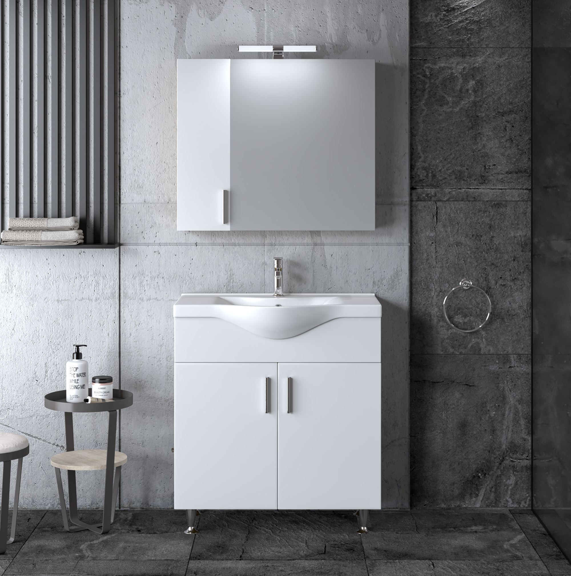 Σετ Έπιπλο Μπάνιου SIENA WHITE 75 9SSI075GL0W Πάγκο 72x34x83cm Αποτελείται από: Πάγκος με τέσσερα ποδαράκια SIENA 75 WHITE. Διαθέτει ευρύχωρο ντουλάπι με δύο πόρτες. Περιλαμβάνει εσωτερικό ράφι που σας προσφέρει έξτρα χώρο για την τοποθέτηση και οργάνωση των αντικειμένων σας. Καθρέφτης SIENA WHITE 75. Περιλαμβάνει πρόσοψη καθρέφτη που ανοίγει προς τα δεξιά και μια μικρότερη ξύλινη πόρτα στο αριστερό πλαϊνό μέρος, στον ίδιο χρωματισμό με τον καθρέφτη, που ανοίγει προς τα αριστερά. Το μικρό ντουλαπάκι διαθέτει ένα ράφι που σας προσφέρει έξτρα αποθηκευτικό χώρο. Το μεγάλο ντουλάπι διαθέτει επίσης εσωτερικό ράφι για την τοποθέτηση των φαρμάκων και αντικειμένων καθημερινής χρήσης. Νιπτήρας BASIC 75 από λευκή πορσελάνη κορυφαίας ποιότητας και υψηλής αντοχής και αισθητικής. Διαθέτει οπή υπερχείλισης. Μελαμίνη 16mm πάχος Το Σετ Έπιπλο Μπάνιου Siena στην απόχρωση White αποτελεί ένα στυλάτο και μοντέρνο κομμάτι! Μετατρέπει το μπάνιο σας σε πραγματικό χώρο χαλάρωσης. Το λευκό γυαλιστερό χρώμα έχει μεγάλη διάρκεια και αντοχή στο χρόνο. •Πρακτικοί αποθηκευτικοί χώροι •Μηχανισμοί για απαλό και αθόρυβο κλείσιμο •Εύκολη τοποθέτηση •Ελληνικής κατασκευής •Ετοιμοπαράδοτα προϊόντα Δεν συμπεριλαμβάνονται το φωτιστικό, η μπαταρία και η στήλη. Διατίθεται έτοιμο συναρμολογημένο.