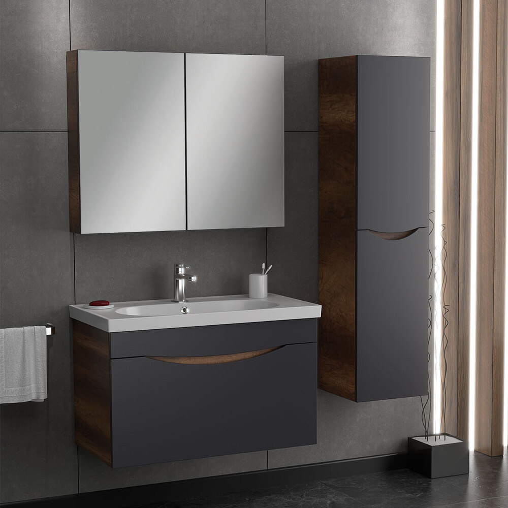 Σετ Έπιπλο Μπάνιου Smile Ανθρακί / Barok Mdf 18Mm Λάκα 85 9Ssmi085Abm
