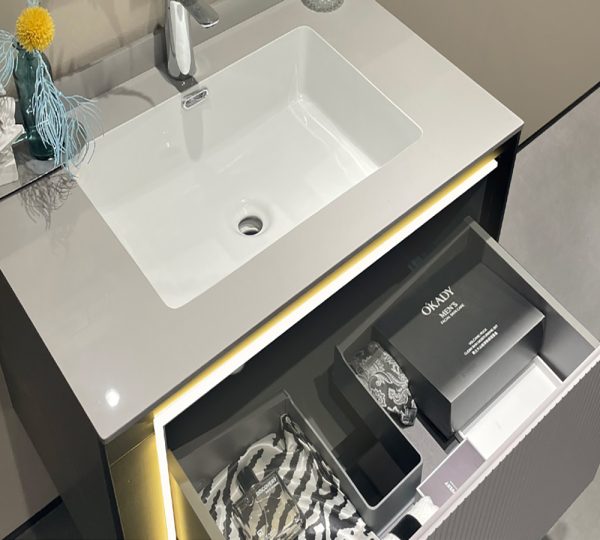 ΣΕΤ ΕΠΙΠΛΟΥ GREYS 80cm χρ.LIGHT GREY 9SGRE080LGR Το σετ επίπλου GREYS ΚΟΝΤΡΑΠΛΑΚΕ ΘΑΛΑΣΣΗΣ ήρθε για να συνδιάσει τη σύχρονη αισθητική με κλασικές πινελιές Κατασκευασμένα εξολοκλήρου από ΚΟΝΤΡΑΠΛΑΚΕ ΘΑΛΑΣΣΗΣ και άλλα σύγχρονα υλικά που προσφέρουν εξαιρετική αντοχή στην υγρασία και το νερό!!! Αποτελείται από: Επιτυχια βάση διαστάσεων 80x50cm: Με συρτάρι κορυφαίας κατασκευής και υψηλής αισθητικής που προσδιδει στον χωρο σας Καθρέφτης led καθρέφτη με αντιθαμβωτική λειτουργία, τρείς επιλογές θερμοκρασίας χρώματος και αυξομείωση έντασης (dimmer). Διαθέτει στο κάτω μέρος υποδοχή για ρεύμα και βάσεις στήριξης για οδοντόβουρτσες (με συστημα αποστειρωσης), πιστολάκι και είδη προσωπικής υγιεινής Νιπτήρας λευκός πορσελάνης Εύκολη τοποθέτηση Ετοιμοπαράδοτα προϊόντα Δεν συμπεριλαμβάνονται η μπαταρία, η στήλη και τα διακοσμητικά. Διατίθεται έτοιμο συναρμολογημένο.
