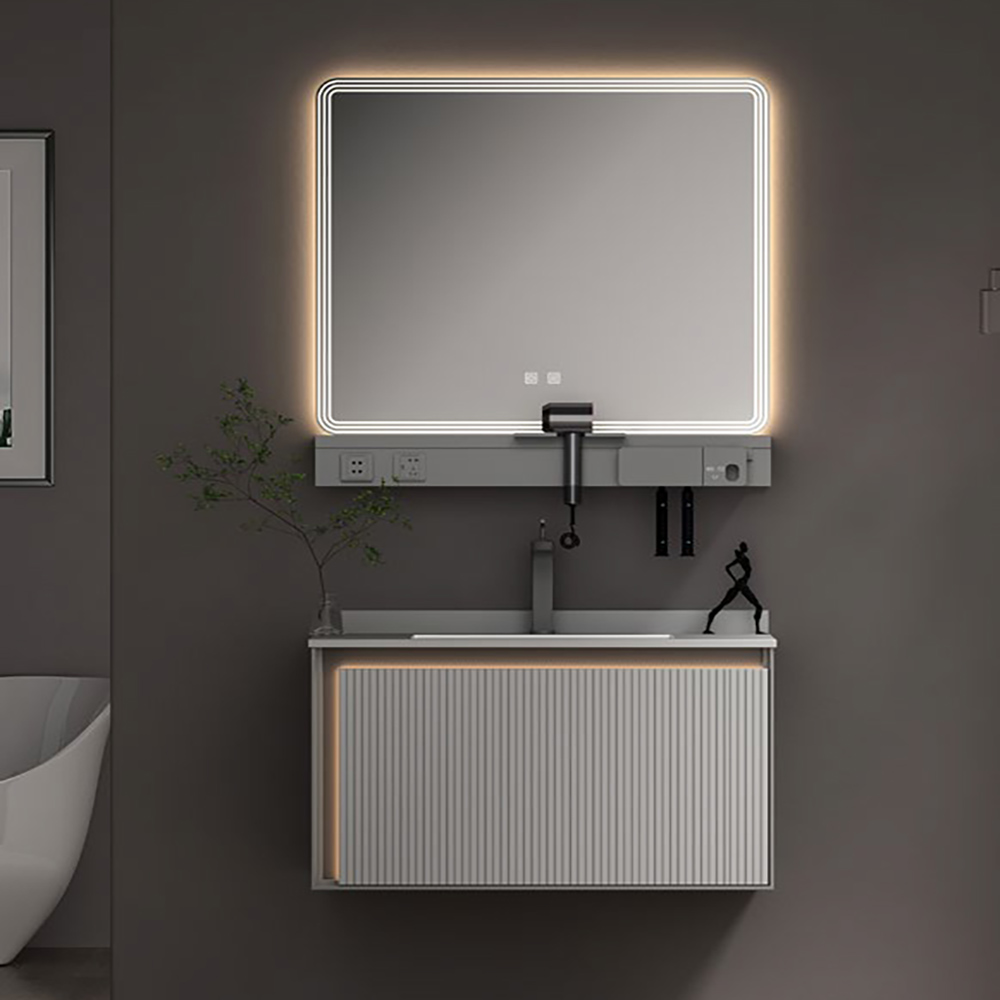 ΣΕΤ ΕΠΙΠΛΟΥ GREYS 80cm χρ.LIGHT GREY 9SGRE080LGR Το σετ επίπλου GREYS ΚΟΝΤΡΑΠΛΑΚΕ ΘΑΛΑΣΣΗΣ ήρθε για να συνδιάσει τη σύχρονη αισθητική με κλασικές πινελιές Κατασκευασμένα εξολοκλήρου από ΚΟΝΤΡΑΠΛΑΚΕ ΘΑΛΑΣΣΗΣ και άλλα σύγχρονα υλικά που προσφέρουν εξαιρετική αντοχή στην υγρασία και το νερό!!! Αποτελείται από: Επιτυχια βάση διαστάσεων 80x50cm: Με συρτάρι κορυφαίας κατασκευής και υψηλής αισθητικής που προσδιδει στον χωρο σας Καθρέφτης led καθρέφτη με αντιθαμβωτική λειτουργία, τρείς επιλογές θερμοκρασίας χρώματος και αυξομείωση έντασης (dimmer). Διαθέτει στο κάτω μέρος υποδοχή για ρεύμα και βάσεις στήριξης για οδοντόβουρτσες (με συστημα αποστειρωσης), πιστολάκι και είδη προσωπικής υγιεινής Νιπτήρας λευκός πορσελάνης Εύκολη τοποθέτηση Ετοιμοπαράδοτα προϊόντα Δεν συμπεριλαμβάνονται η μπαταρία, η στήλη και τα διακοσμητικά. Διατίθεται έτοιμο συναρμολογημένο.