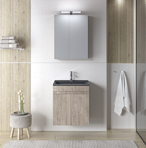 ΣΕΤ ΕΠΙΠΛΟΥ OMEGA 50cm χρ. (W.BL) BEIGE OAK 9SOM050BOBW Πάγκο 50x44x60 • Πάγκος κρεμαστός OMEGA BEIGE OAK 50 με τέλεια εφαρμογή σε όλες τις επιφάνειες με ή χωρίς πλακίδια. Περιλαμβάνει μεγάλο ερμάριο για την εξοικονόμηση επιπλέον αποθηκευτικού χώρου στο μπάνιο. • Καθρέφτης OMEGA BEIGE OAK 45 . Περιλαμβάνει πρόσοψη καθρέφτη με δύο πόρτες. Διαθέτει εσωτερικό ράφι για να οργανώνετε καλύτερα την αποθήκευση χρηστικών αντικειμένων καθημερινής χρήσης για όλα τα μέλη της οικογένειάς σας.. •Νιπτήρας SLIM 50 από μαύρη πορσελάνη κορυφαίας ποιότητας και υψηλής αντοχής και αισθητικής. Διαθέτει οπή υπερχείλισης. Μελαμίνη 16mm πάχος Το Σετ Έπιπλο Μπάνιου Omega στην απόχρωση Beige Oak αποτελεί ένα μοντέρνο κομμάτι για το μπάνιο σας! Έχει την υφή και την όψη του ξύλου σε αποχρώσεις του μπεζ. Με εργονομικό σχεδιασμό αλλά και λειτουργικότητα. •Πρακτικοί αποθηκευτικοί χώροι •Μηχανισμοί για απαλό και αθόρυβο κλείσιμο •Εύκολη τοποθέτηση •Ετοιμοπαράδοτα προϊόντα Δεν συμπεριλαμβάνονται το φωτιστικό και η μπαταρία. Διατίθεται έτοιμο συναρμολογημένο.
