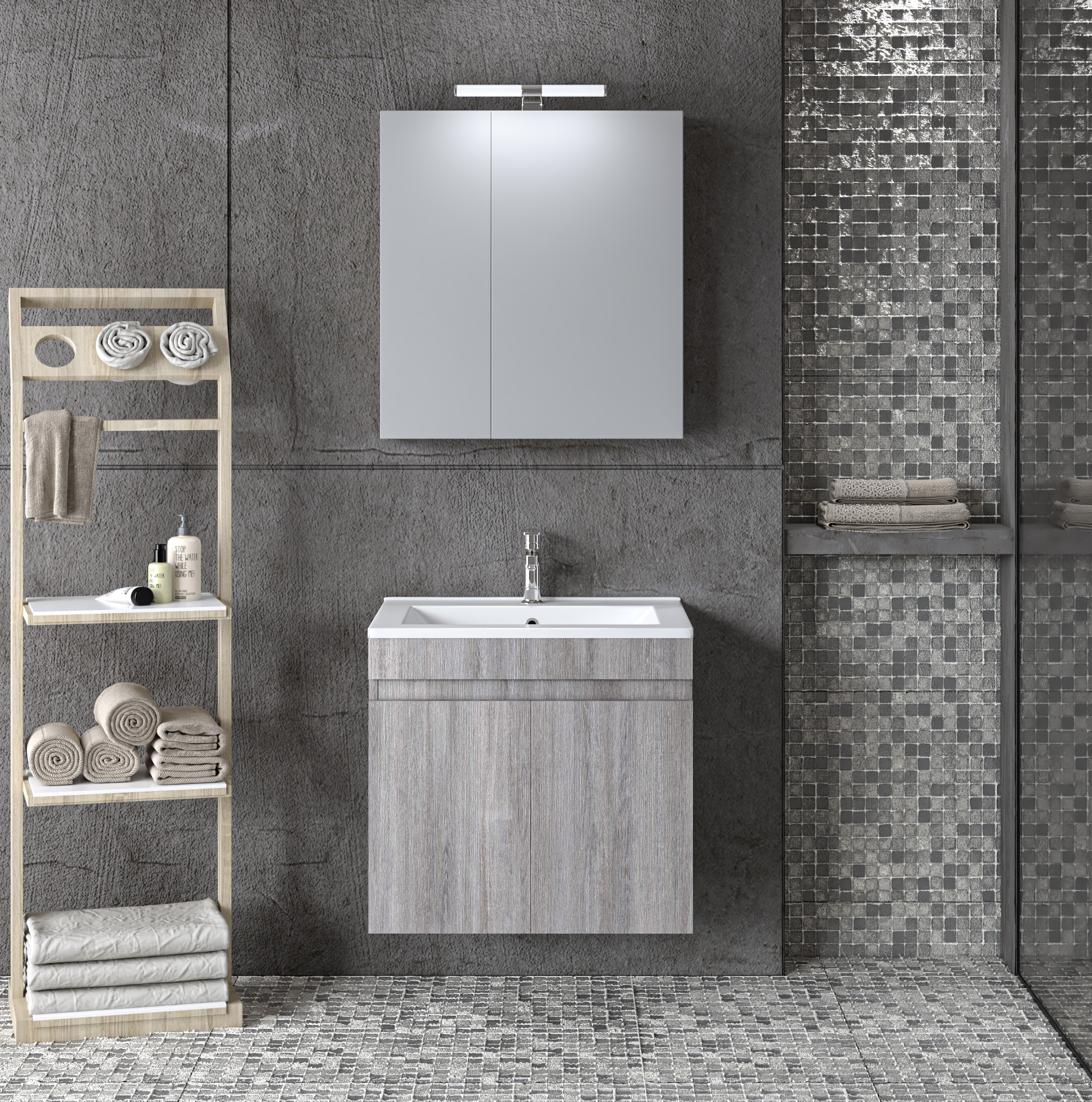 Σετ Επιπλου Omega 65Cm New Χρ. Grey Oak 9Som065Gonw