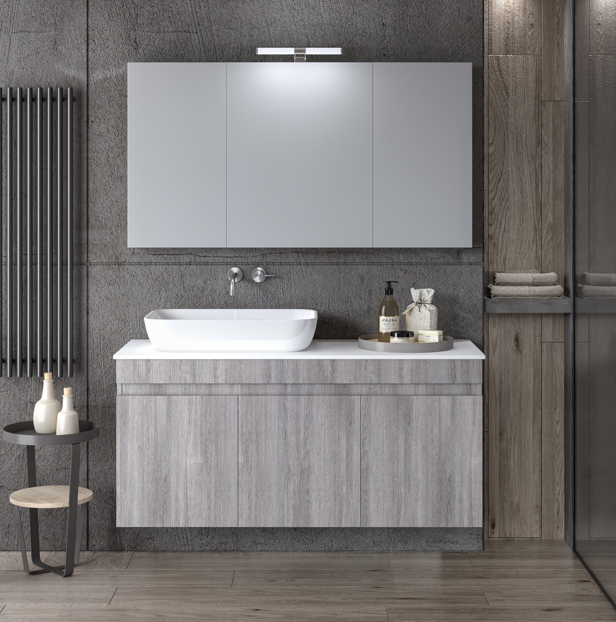 Σετ Επίπλου Μπάνιου Omega Top 120cm χρ. ΓΚΡΙ 9SOMT120GO Το Σετ Έπιπλο Μπάνιου Omega Γκρι αποτελεί ένα στυλάτο και μοντέρνο σετ έπιπλο μπάνιο με εργονομικό σχεδιασμό αλλά και λειτουργικότητα. Ο χρωματισμός του έχει την υφή και την όψη του ξύλου σε αποχρώσεις του γκρι. Αποτελείται από: Πάγκος κρεμαστός OMEGA Γκρι 120 με τέλεια εφαρμογή σε όλες τις επιφάνειες με ή χωρίς πλακίδια. Περιλαμβάνει μεγάλο ερμάριο για την εξοικονόμηση επιπλέον αποθηκευτικού χώρου στο μπάνιο. Καθρέφτης OMEGA Γκρι 120 . Περιλαμβάνει πρόσοψη καθρέφτη με δύο πόρτες. Διαθέτει εσωτερικό ράφι για να οργανώνετε καλύτερα την αποθήκευση χρηστικών αντικειμένων καθημερινής χρήσης για όλα τα μέλη της οικογένειάς σας. Sintered Stone Top για κορυφαία ποιότητα και υψηλή αντοχή και αισθητική. Διατίθεται ατρύπητο για ευεληξια στην τοποθέτηση Νιπτήρα επικαθούμενο πορσελάνης Μπορεί να τοποθετηθεί δεξιά, αριστερά ή στο κέντρο του πάγκου Χαρακτηριστικά: Υλικό κατασκευής: Μελαμίνη 16mm πάχος Πρακτικοί αποθηκευτικοί χώροι Με ντουλάπι και εσωτερικό ράφι Μηχανισμοί για απαλό και αθόρυβο κλείσιμο Εύκολη τοποθέτηση Ετοιμοπαράδοτα προϊόντα Δεν περιλαμβάνει το φωτιστικό, τη μπαταρία, τη στήλη και τα διακοσμητικά. Διατίθεται έτοιμο συναρμολογημένο.