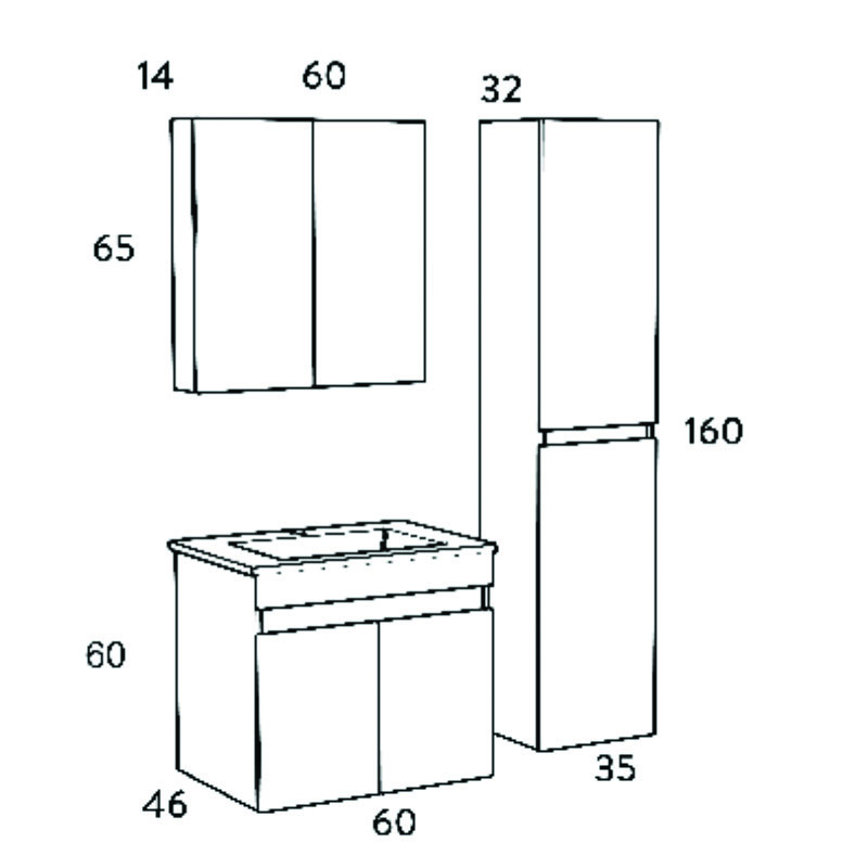 Σετ Επιπλου Omega Top 60Cm Χρ. Beige Oak 9Somt060Bo