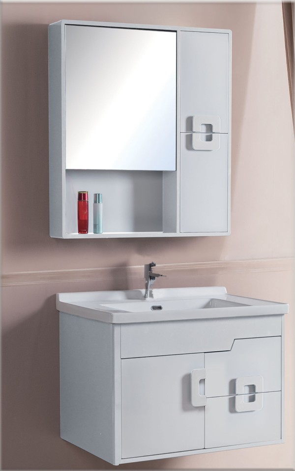 Έπιπλο μπάνιου και καθρέφτης PVC σε λευκή απόχρωση.