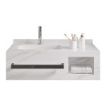 Σετ Πάγκου MARLEN 80 χρ. WHITE SNOW 3BMAR080WHS ΠΑΓΚΟΣ-ΝΙΠΤΗΡΑΣ MARLEN WHITE SNOW Μοναδική αισθητική – Ξεχωριστή ποιότητα Γνωρίστε τη νέα σειρά επίπλων μπάνιου με την εγγύηση ποιότητας MARTIN. Κατασκευασμένο από πυροσυσσωματωμένη πέτρα (sintered stone) και άλλα σύγχρονα υλικά Αποτελείται από: Νιπτηρόπαγκο διαστάσεων 80x50x30 cm: Με έτοιμη υποδοχή για τη μπαταρία, μαύρο μεταλλικό χερούλι ιδανικό για κρέμασμα πετσέτας και χωνευτο χώρο αποθήκευσης στα δεξιά, διαστάσεις γούρνας, 50×33 cm Εύκολη τοποθέτηση Ετοιμοπαράδοτα προϊόντα Δεν συμπεριλαμβάνονται η μπαταρία και τα διακοσμητικά. Διατίθεται έτοιμο συναρμολογημένο.