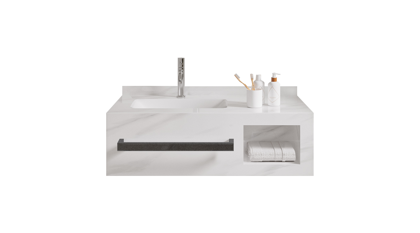 Σετ Πάγκου MARLEN 80 χρ. WHITE SNOW 3BMAR080WHS ΠΑΓΚΟΣ-ΝΙΠΤΗΡΑΣ MARLEN WHITE SNOW Μοναδική αισθητική – Ξεχωριστή ποιότητα Γνωρίστε τη νέα σειρά επίπλων μπάνιου με την εγγύηση ποιότητας MARTIN. Κατασκευασμένο από πυροσυσσωματωμένη πέτρα (sintered stone) και άλλα σύγχρονα υλικά Αποτελείται από: Νιπτηρόπαγκο διαστάσεων 80x50x30 cm: Με έτοιμη υποδοχή για τη μπαταρία, μαύρο μεταλλικό χερούλι ιδανικό για κρέμασμα πετσέτας και χωνευτο χώρο αποθήκευσης στα δεξιά, διαστάσεις γούρνας, 50×33 cm Εύκολη τοποθέτηση Ετοιμοπαράδοτα προϊόντα Δεν συμπεριλαμβάνονται η μπαταρία και τα διακοσμητικά. Διατίθεται έτοιμο συναρμολογημένο.
