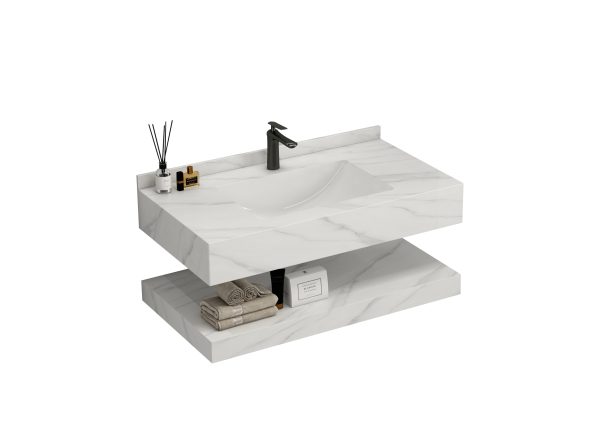Σετ Πάγκου MERILYN 100 χρ. ΛΕΥΚΟ ΜΑΡΜΑΡΟ S3BWMER100WHS Μοναδική αισθητική – Ξεχωριστή ποιότητα Γνωρίστε τη νέα σειρά επίπλων μπάνιου με την εγγύηση ποιότητας MARTIN. Κατασκευασμένο από πυροσυσσωματωμένη πέτρα (sintered stone) και άλλα σύγχρονα υλικά Αποτελείται από: Νιπτηρόπαγκο διαστάσεων 100x50x20 cm με 1 γούρνα. Διαθέτει έτοιμες υποδοχές για τις μπαταρίες Κάτω ράφι ενιαίο, κατασκευασμένο από το ίδιο υλικό, διαστάσεων 100x50x8 cm