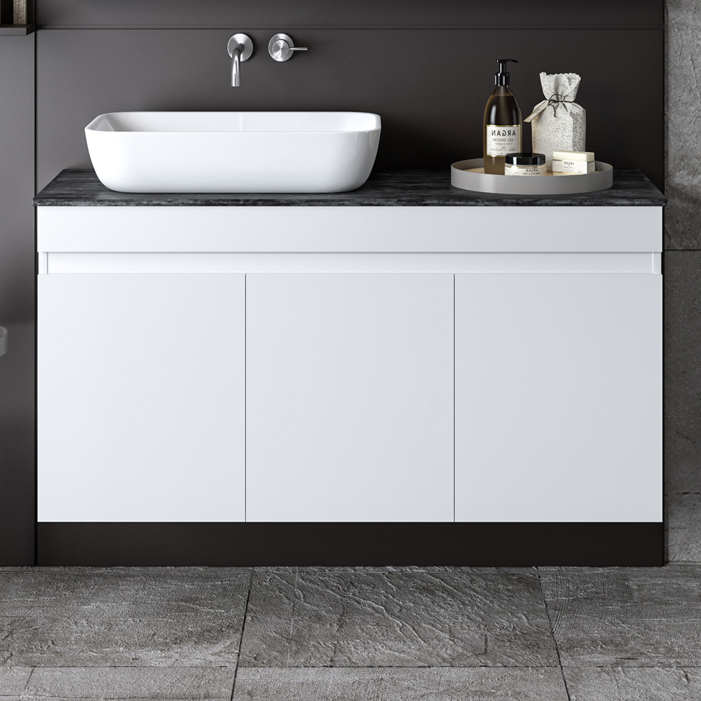 ΣΕΤ ΠΑΓΚΟΥ OMEGA TOP 120cm χρ. ΛΕΥΚΟ S3BOMT120GLG Ο Πάγκος Omega στην απόχρωση Λευκό αποτελεί ένα στυλάτο και μοντέρνο έπιπλο μπάνιου με εργονομικό σχεδιασμό αλλά και λειτουργικότητα. Αποτελείται από: Πάγκος κρεμαστός OMEGA Λευκό 120 με τέλεια εφαρμογή σε όλες τις επιφάνειες με ή χωρίς πλακίδια. Περιλαμβάνει μεγάλο ερμάριο για την εξοικονόμηση επιπλέον αποθηκευτικού χώρου στο μπάνιο. Sintered Stone Top για κορυφαία ποιότητα και υψηλή αντοχή και αισθητική. Διατίθεται ατρύπητο Νιπτήρα επικαθούμενο πορσελάνης Μπορεί να τοποθετηθεί δεξιά, αριστερά ή στο κέντρο του πάγκου Χαρακτηριστικά: Υλικό κατασκευής: Μελαμίνη 16mm πάχος Πρακτικοί αποθηκευτικοί χώροι Μηχανισμοί για απαλό και αθόρυβο κλείσιμο Εύκολη τοποθέτηση Ετοιμοπαράδοτα προϊόντα Δεν περιλαμβάνει το φωτιστικό, τη μπαταρία, τη στήλη και τα διακοσμητικά. Διατίθεται έτοιμο συναρμολογημένο.
