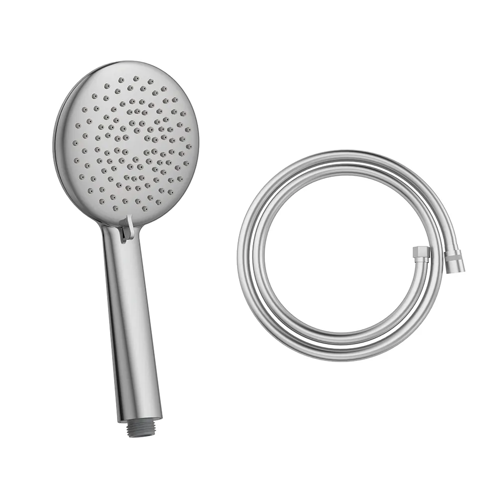 Μοντέρνο, ABS τηλέφωνο ντουζ με στρόγγυλη κεφαλή 3-θέσεων, σε χρωμέ φινίρισμα. Συνδυάζεται με εύκαμπτο χρωμέ, ορειχάλκινο σπιράλ.