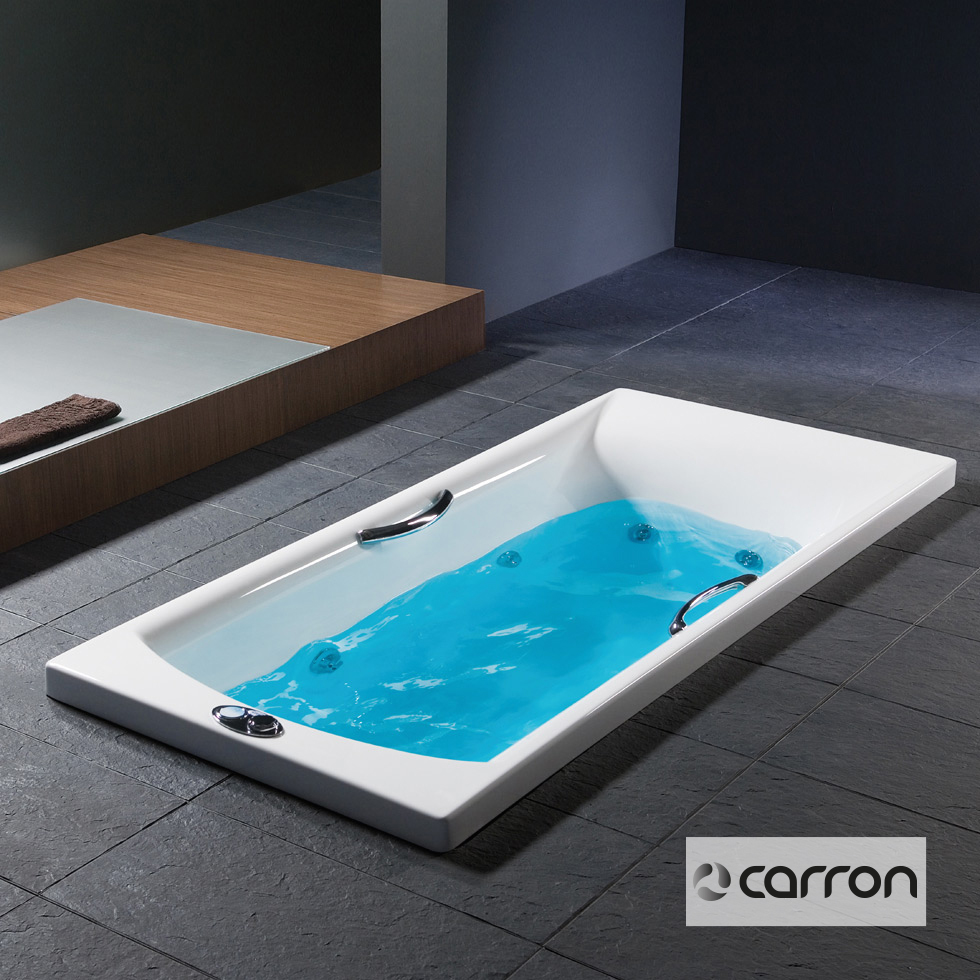 Μπανιέρα SIGMA 170×75 ακρυλική βαρέως τύπου CARRONITE χωρητικότητας 195L, με σύστημα υδρομασάζ με: ηλεκτρονικό on/off, 8 jet chrome, μοτέρ 1,75 hp, υποβρύχιο φωτισμό Led, αισθητήρα στάθμης νερού & πλαίσιο στήριξης, CARRON Αγγλίας