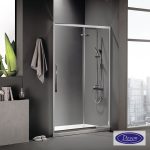 Πόρτα ντουζιέρας DEVON FLOW 150 με 1 σταθερό & 1 συρόμενο φύλλο . Διαστάσεις: 147-151 / ύψος 195 εκ. Άνοιγμα εισόδου 65εκ. Κρύσταλλο ασφαλείας Clear (διαφανές) 6 χιλ. με επεξεργασία Clean Glass