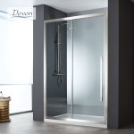 Πόρτα ντουζιέρας DEVON NOXX 160 με 1 σταθερό & 1 συρόμενο φύλλο. Διαστάσεις: 157-159 / ύψος 200 εκ. Άνοιγμα εισόδου 69εκ. Κρύσταλλο ασφαλείας Clear (διαφανές) 6 χιλ. με επεξεργασία Clean Glass, με πλαίσιο από ανοξείδωτο χάλυβα (Inox AISI 304)
