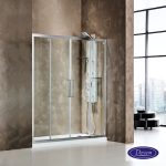Πόρτα ντουζιέρας PRIMUS PLUS 190 με 2 σταθερά & 2 συρόμενα φύλλα. Διαστάσεις: 187-191 / ύψος 195 εκ. Άνοιγμα εισόδου 79,5εκ. Κρύσταλλο ασφαλείας Clear (διαφανές) 6 χιλ. με επεξεργασία Clean Glass