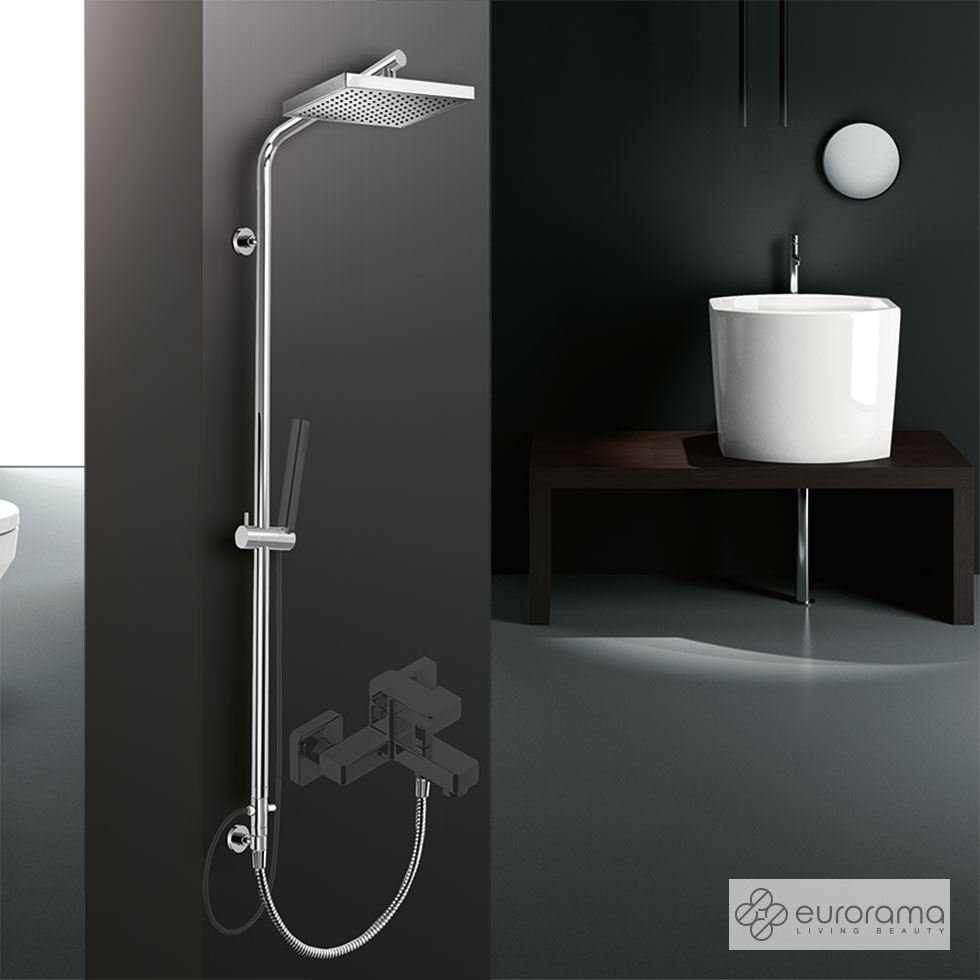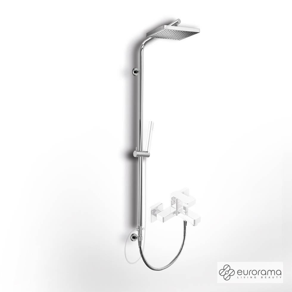 Κολώνα για σύνδεση με μπαταρία λουτρού. Σταθερό ύψος 117 εκ. με ανακλινόμενη κεφαλή anticalcare 20×20 εκ., εκτροπέα, στήριγμα τηλεφώνου & άθραυστο σπιράλ 60 εκ., Eurorama Ιταλίας