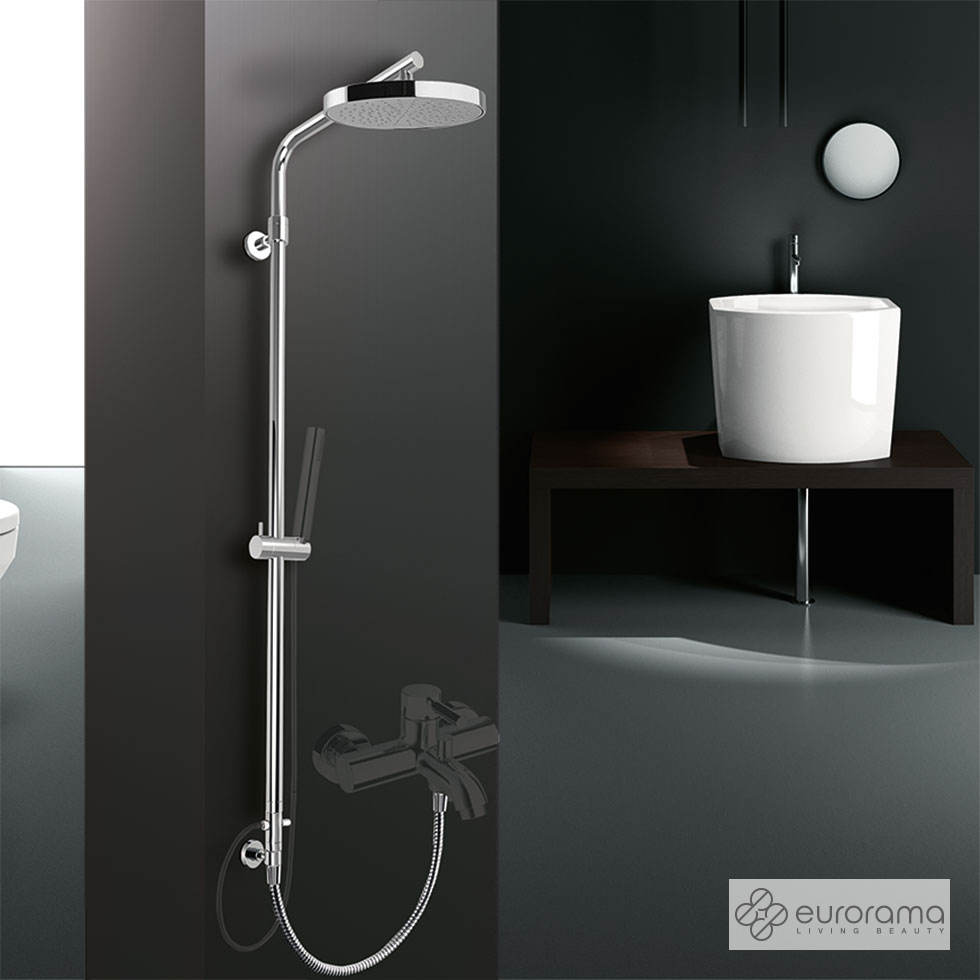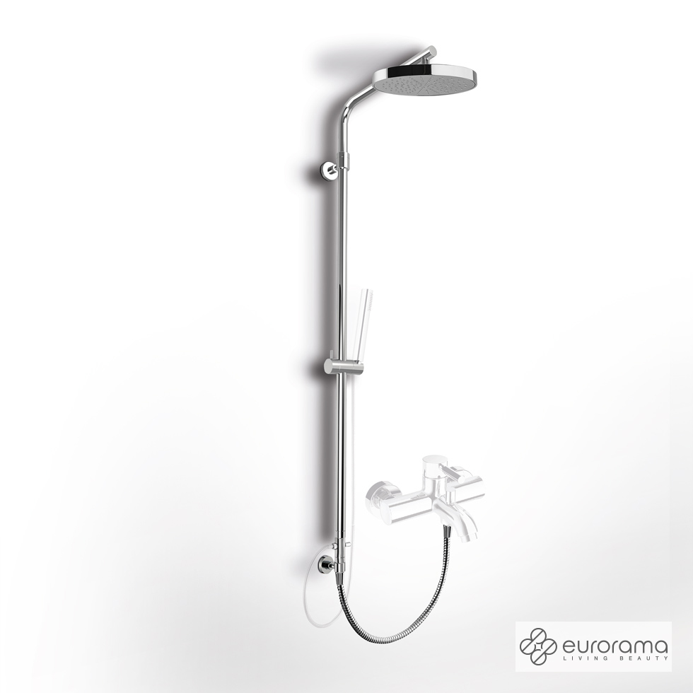 Κολώνα για σύνδεση με μπαταρία λουτρού. Σταθερό ύψος 117 εκ. με ανακλινόμενη κεφαλή anticalcare Φ20 εκ., εκτροπέα, στήριγμα τηλεφώνου & άθραυστο σπιράλ 60 εκ., Eurorama Ιταλίας