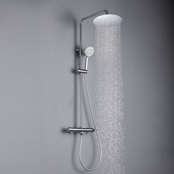 Στήλη ντουζ Imperial Column, ρυθμιζόμενου ύψους (81-118 cm) με κεφαλή από ανοξείδωτο ατσάλι, με ορειχάλκινη μπίλια Φ250. Ο διανομέας είναι κατασκευασμένος εξ ολοκλήρου από υψηλής ποιότητας ορείχαλκο. Συμπεριλαμβάνεται στήριγμά στον τοίχο ABS, τηλέφωνο 5-λειτουργιών και λείο σπιράλ τηλεφώνου (PVC) μήκους 150 εκατοστών. Διατίθεται σε χρωμέ, μαύρο ματ και χρυσό σατινέ, κατόπιν επιλογής.