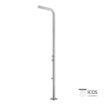 Στήλη ντους θερμομικτική εξωτερικού χώρου DONA ΜΙΧ ICOS SHOWER ύψους 220 εκ. από ανοξείδωτο χάλυβα Inox AISI316. Με 2 εξόδους: ντους κεφαλής και τηλέφωνο. Με ενδοδαπέδια βάση σύνδεσης (control box).