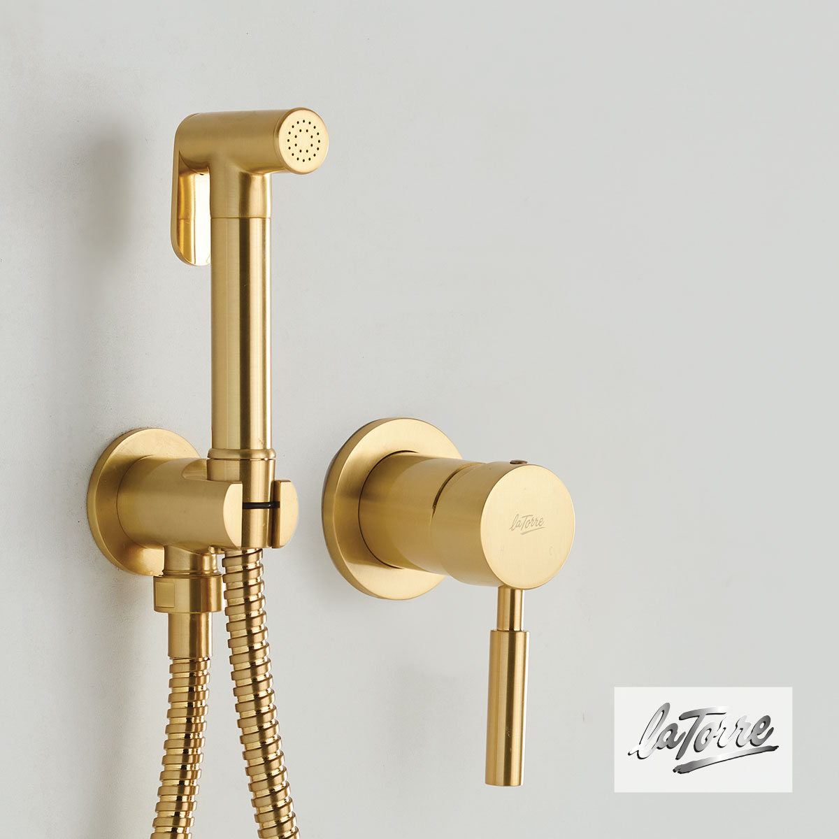 Εντοιχιζόμενος μίκτης Tech Flush-Mix για πλύση υγιεινής ή καθαρισμό λεκάνης, με: παροχή τοίχου με ενσωματωμένο στήριγμα τηλεφώνου, τηλέφωνο με αυτόματο stop & μεταλικό σπιράλ 1m La Torre Ιταλίας