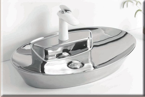 Νιπτήρας πορσελάνης επικαθήμενος με οπη για την βρυση silver
