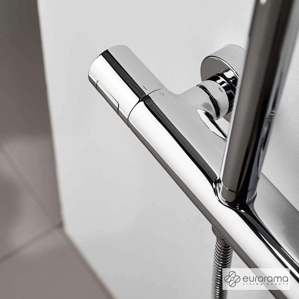 Θερμοστατικήμπαταρία Ντουζιέρας Με Κεφαλή Και Κολώνα Μη Ρυθμιζόμενου Ύψους Thermo Round Eurorama Chrome