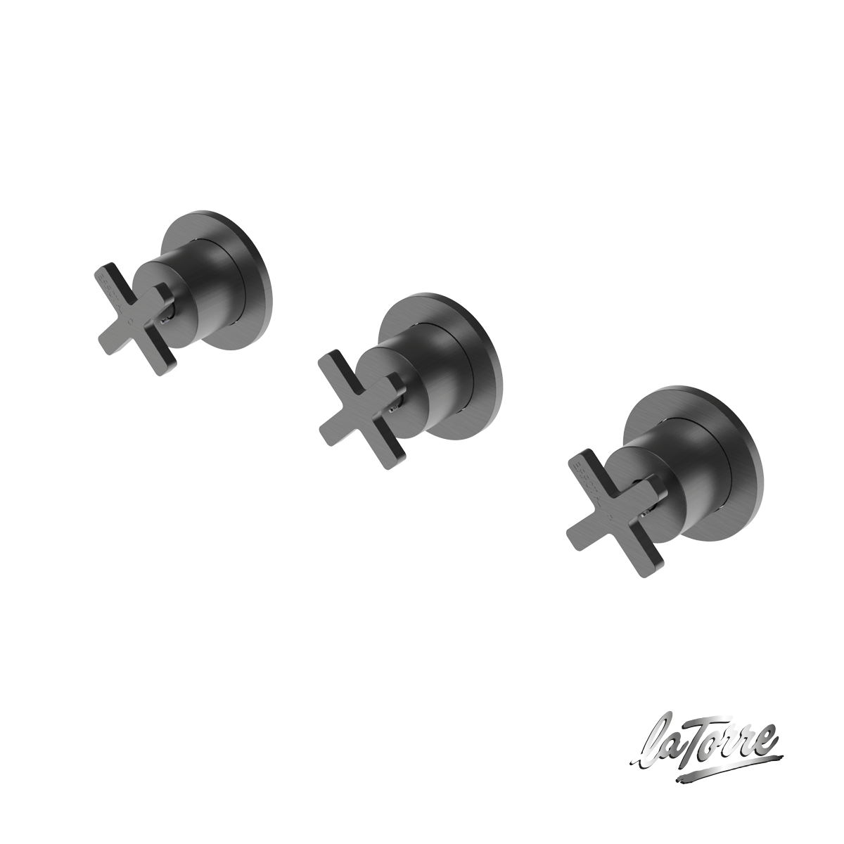 Βαλβίδες Ζεστό-Κρύο Με Εκτροπέα 3 Εξόδων, La Torre Elle Cross Black Brushed