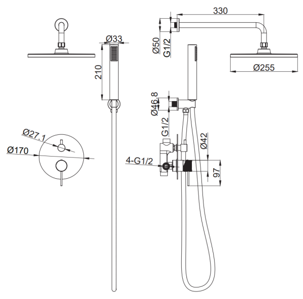Xen 16010 Σετ Εντοιχ. Με Μικτη 2 Εξοδων-Βραχιονα-Κεφαλη-Παροχ-Τηλ-Σπιραλ